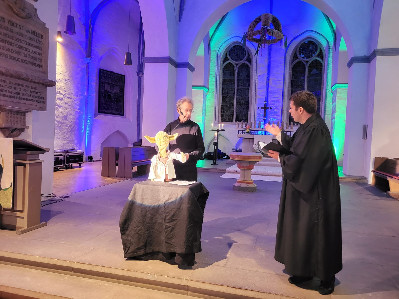 Patrick Haase: In meinem Star-Wars-Gottesdienst habe ich anstelle die Kriegsthematik in den Vordergrund zu stellen, auf die Friedensbotschaft von Star Wars gesetzt, den inneren Kampf zwischen Gut und Böse und die Hoffnung auf Erlösung. Figuren wie Yoda oder Darth Vader bieten starke Anknüpfungspunkte, um über die Herausforderungen des Lebens zu sprechen. Popkulturelle Symbole und Geschichten eröffnen neue Zugänge zur biblischen Botschaft.