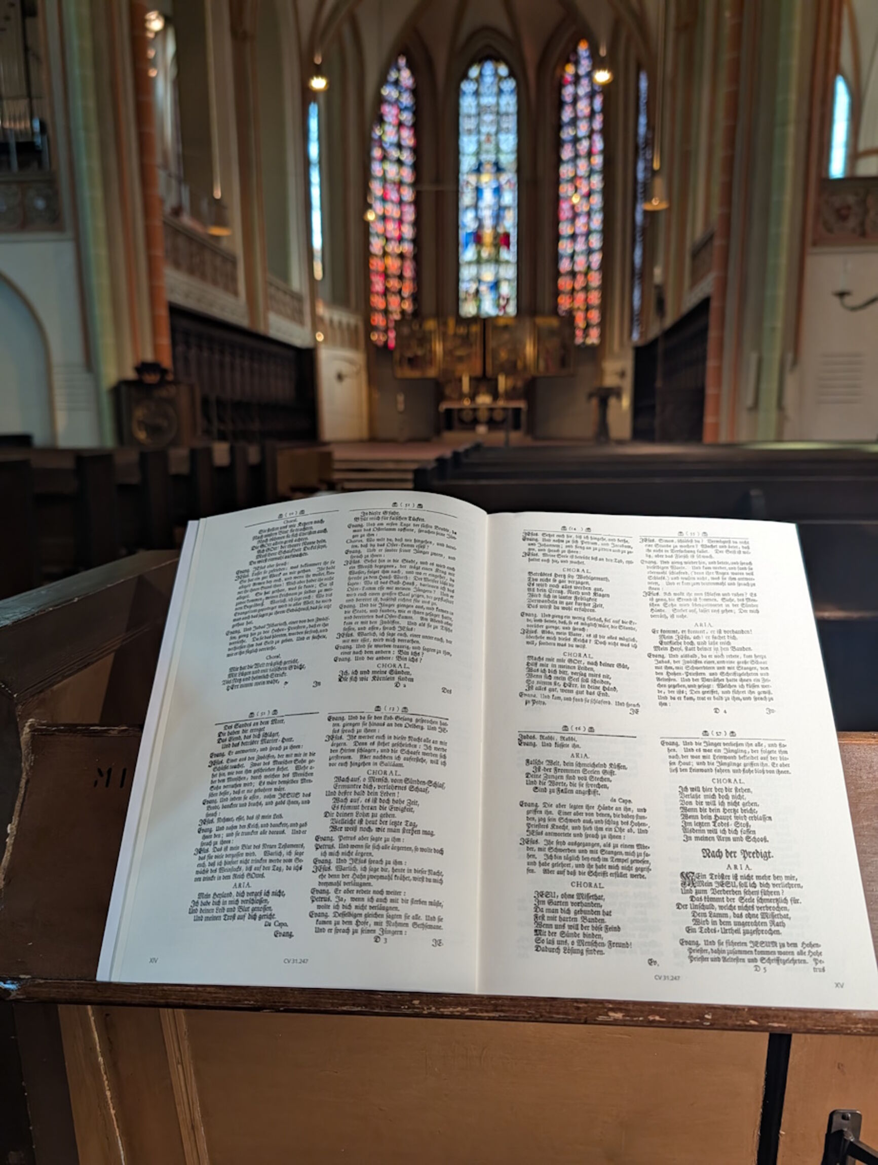Während sich barocke Elemente wie Arien, Eingangs- und Schlusschor sowie Choräle zumindest teilweise rekonstruieren lassen, bleibt der biblische Erzählkern – die eigentliche Handlung – musikalisch verloren. Er existiert nur noch als Libretto. Wellner zeigt ein originales Heftchen, das die Gemeinde damals mitlas: „Wort für Wort, was damals von Bach vertont worden ist – nur eben die Musik leider nicht.“