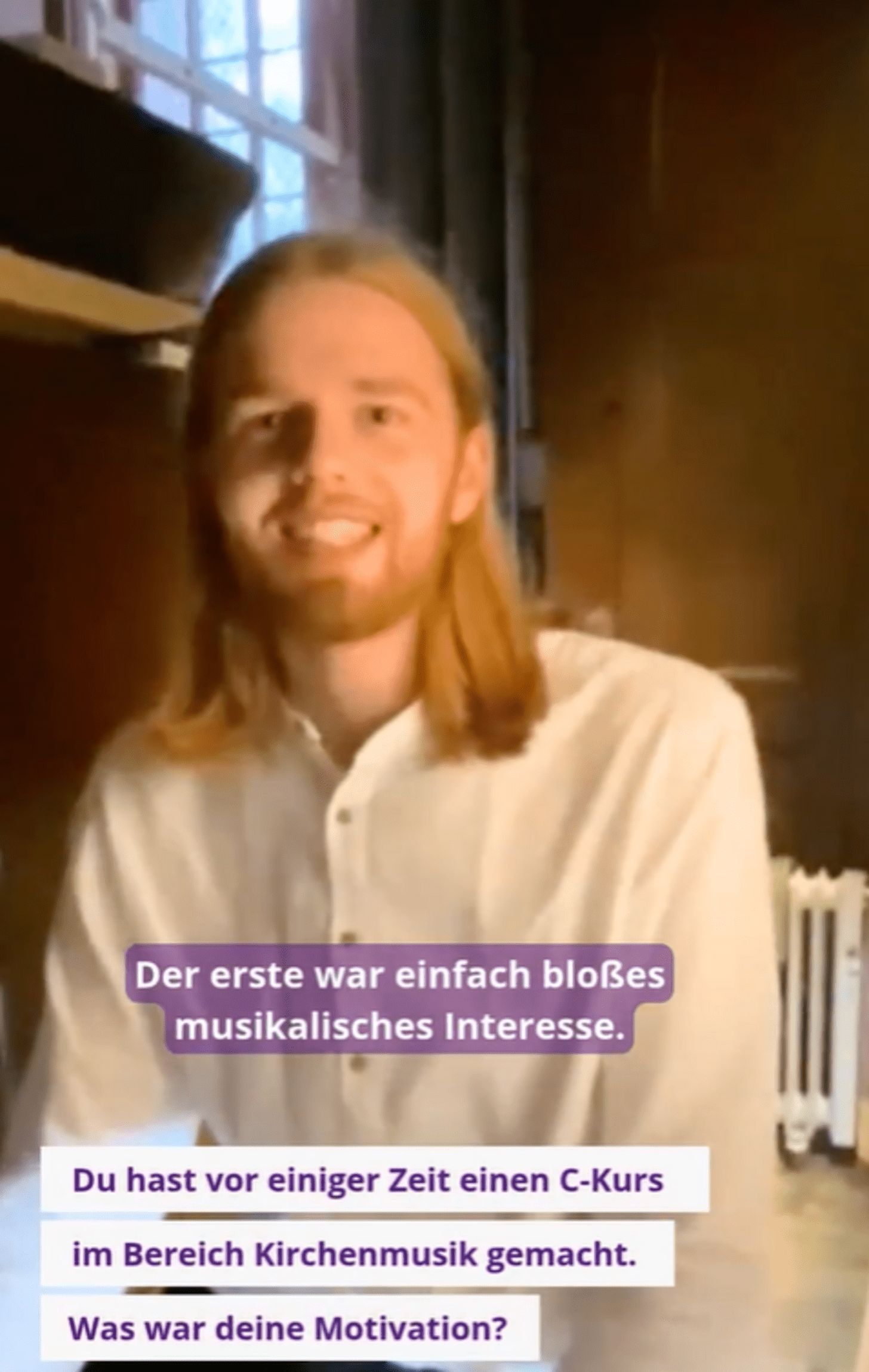 Bjarne: Das hatte im Wesentlichen drei Gründe. Der erste war einfach bloßes musikalisches Interesse – da hatte ich mit Kirchenmusik und Kirche eigentlich noch gar nichts am Hut. Der zweite Grund war dann das vertiefte kirchenmusikalische Interesse. Ich hatte schon durch die D-Prüfung Blut geleckt und wollte mich einfach auf der nächsthöheren Stufe fortbilden.