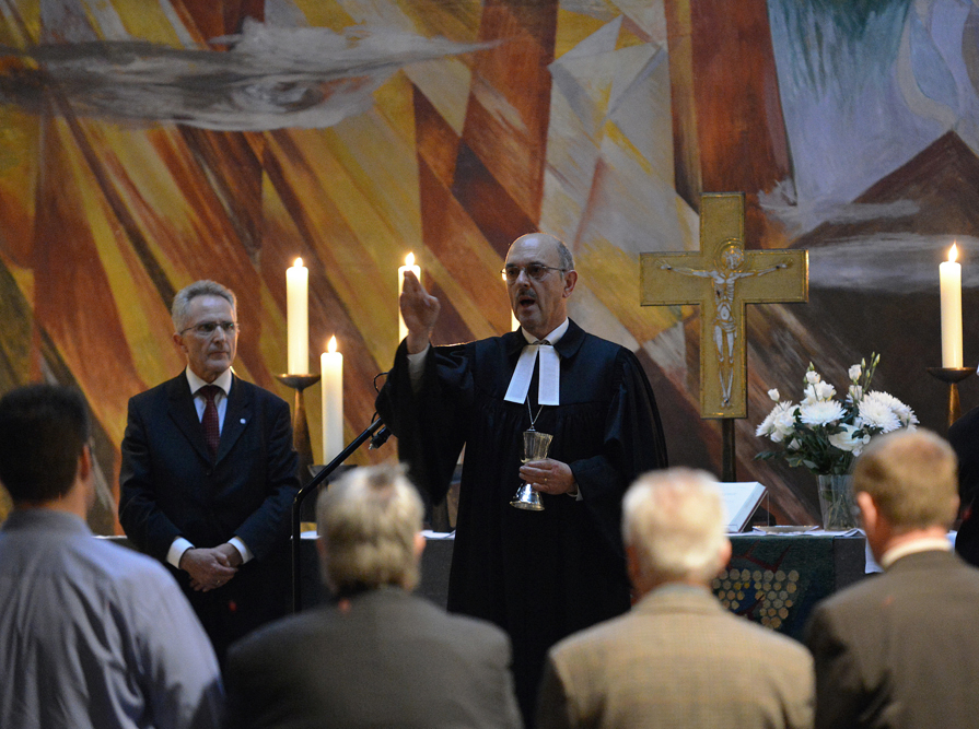 „Was würde uns in einer Zeit des Stumm-Seins aufgehen“, fragte Rathing. Nicht Arbeitsziele und Planungsprozesse sicherten die Zukunft der Kirche, sondern Gott selbst. Das Lob Gottes könne vom Kreisen um sich selbst befreien, predigte Rathing. Die im „Benedictus“ angesprochene Erlösung bedeute ein „Loskommen“, Gott sei im Innersten „herzliche Barmherzigkeit“. „Einer Welt, die – wie die unsere – so unbegabt ist zur Barmherzigkeit, der müssen wir doch davon berichten“, ermutigte der Prediger zur Weitergabe des Evangeliums.