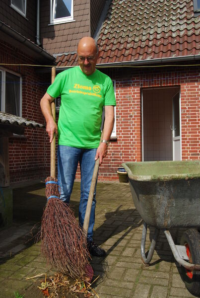 Auch Landessuperintendent Dieter Rathing, seit einem Jahr Vorstandsvorsitzender des Evangelischen Dorfhelferinnenwerks Niedersachsen, erschien täglich um 7.30 Uhr zum Dienst. Der Regionalbischof schälte Kartoffeln, putzte Fenster und pflückte Himbeeren. Zwischendurch übernahm er auch die Fahrdienste der Mutter, brachte beispielsweise Tochter Cleo mit dem Auto zum Tennis. „Heute Morgen waren wir einkaufen, anschließend habe ich den Hof gefegt“, gibt Rathing im Pressegespräch Einblick in seinen Praktikumsalltag. Eine besondere Herausforderung sei es gewesen, das Raff-Rollo in der Küche nach der Wäsche wieder instand zu setzen. „Alle Fäden waren raus“, verrät Almut Detmering das Problem. Und zeigt voller Anerkennung auf den funktionsfähigen Vorhang.