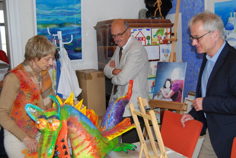 Ein weiteres Anschauungsbeispiel lieferte das Künstlerhaus Meinersen (Landkreis Gifhorn): Unter anderem gewährt der Verein jungen, professionellen Künstlern Stipendien, stellt ihnen für jeweils ein Jahr Ateliers und Wohnungen zur Verfügung. Der landeskirchliche Beauftragte für Kunst und Kultur, Matthias Surall (Hannover), der Rathing auf seiner Reise begleitete, würdigte das Projekt als vorbildlich: „Die klar konturierte und mit einem deutlichen Anforderungsprofil versehene Ausgestaltung der Künstlerstipendien sind ein schönes, nachahmenswertes Beispiel.“