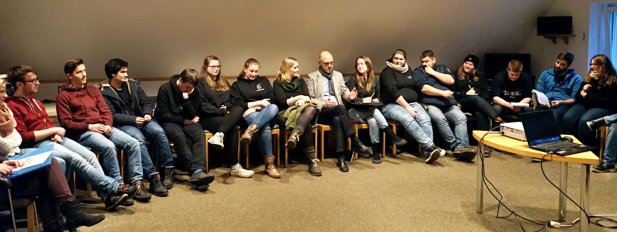 Im Mittelpunkt des Nachmittags stand die Begegnung der Delegierten mit dem Landessuperintendenten. Sie gaben ihm und einander einen komprimierten Überblick über die kirchliche Jugendarbeit in ihren jeweiligen Kirchenkreisen. Dabei kamen die gut angenommenen Freizeitangebote und erfolgreiche Projekte wie Aktionen zum Reformationsjubiläum, Teilnahmen am Kirchentag in Berlin oder am „Konfi-Camp“ in Wittenberg genauso zur Sprache, wie Unzufriedenheiten mit Gegebenheiten vor Ort, z. B. mit unter- oder gar unbesetzten Kirchenkreisjugend-Pfarrstellen.