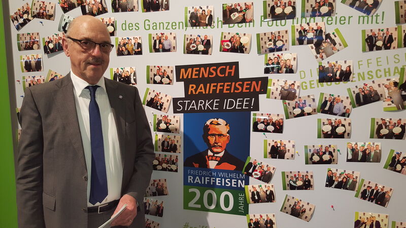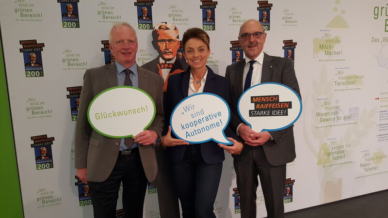 Zu den Gratulanten gehörte auch der Lüneburger Landessuperintendent Dieter Rathing. „Ich möchte meine diesjährige Sprengelbereisung Friedrich Wilhelm Raiffeisen widmen, der ja ein überzeugter evangelischer Christ war“, begründete der Regionalbischof sein spezielles Interesse. Anders als etwa heutigen Aktiengesellschaften, die ihren Aktionären verpflichtet sind, sei es Raiffeisen um Hilfe für Bedürftige gegangen. Die von ihm gegründeten Genossenschaften verfolgten konsequent das Prinzip der Uneigennützigkeit. „Die Darlehnskassen-Vereine als Mittel zur Abhilfe der Noth der ländlichen Bevölkerung sowie auch der städtischen Handwerker und Arbeiter“, ließ bereits der Titel seines 1865 erschienenen Buchs die Ziele erkennen. Das Motto am Stand in Halle 3.2 betonte den Gedanken der Gemeinschaft: „Das Wir ist unsere Stärke“.