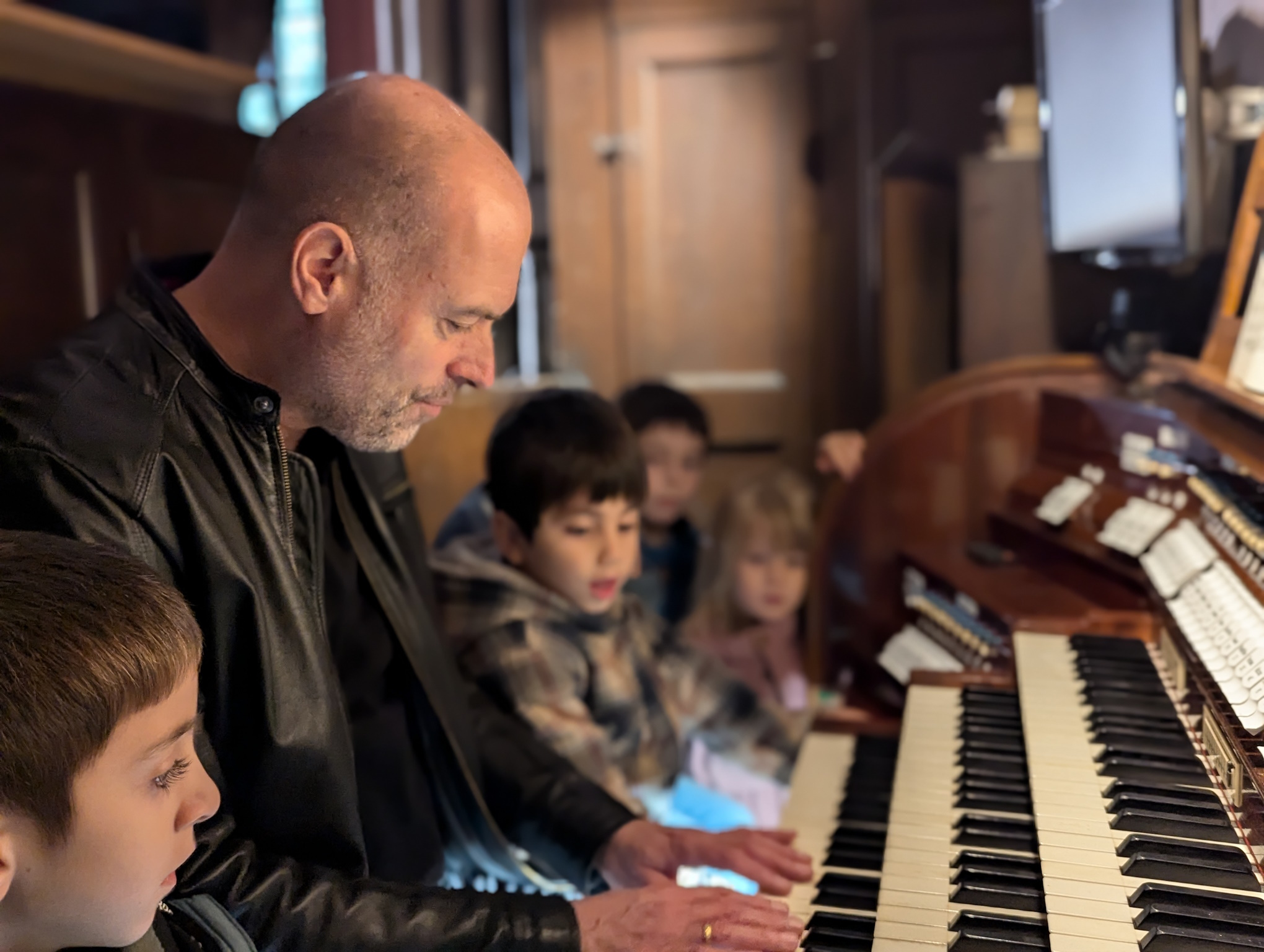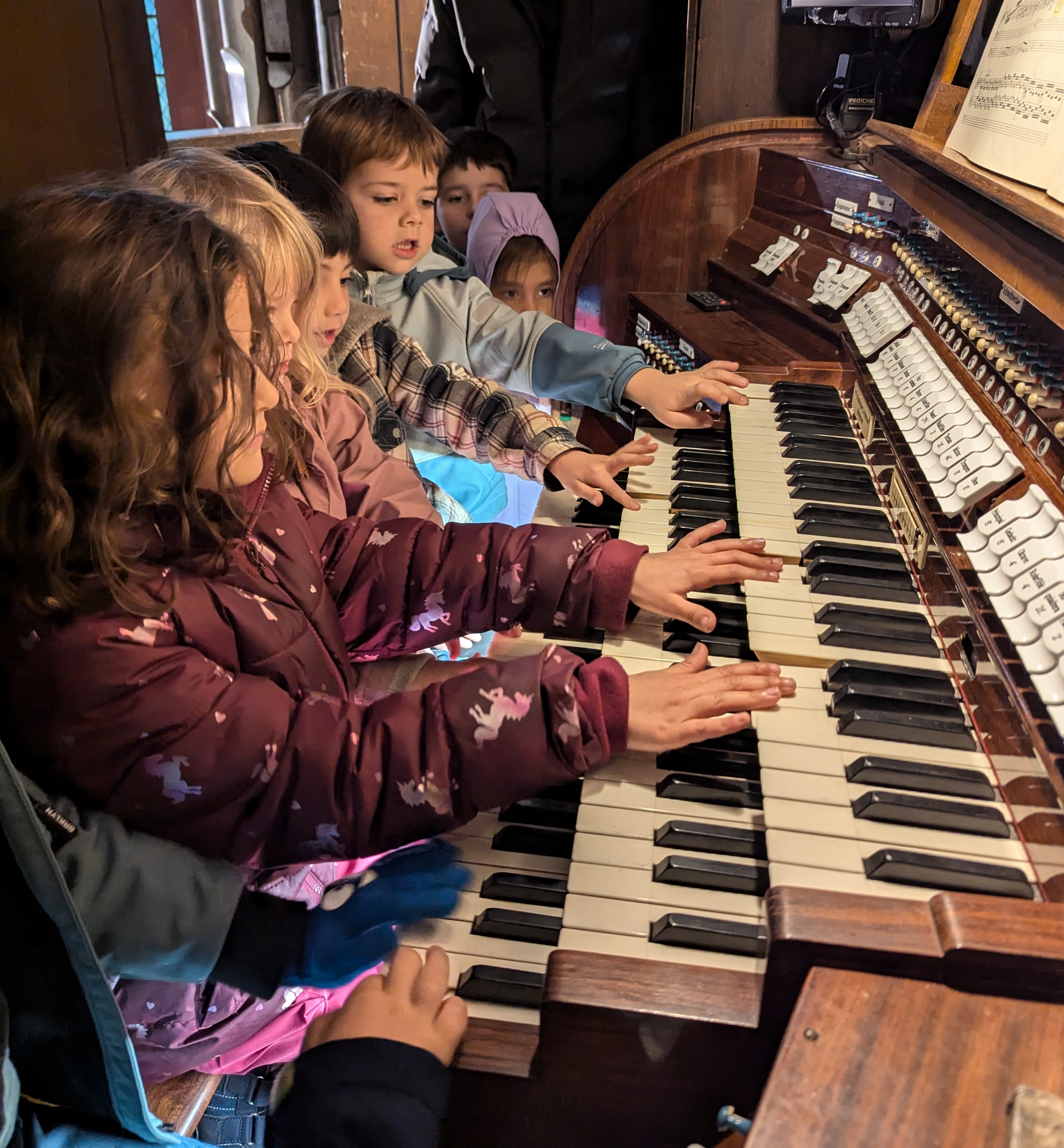 Voss begann den Besuch mit einer kurzen kindgerechten Einführung vom Altar aus mit Blick auf die beindruckend große Orgel. Dann ging es die Treppen hinauf zum Instrument. Schnell wurde klar, dass eine Orgel aus weit mehr besteht als nur aus Tasten. Organist Voss demonstrierte den Kleinen, wie jede Pfeife der Orgel einen einzigartigen Klang erzeugt.