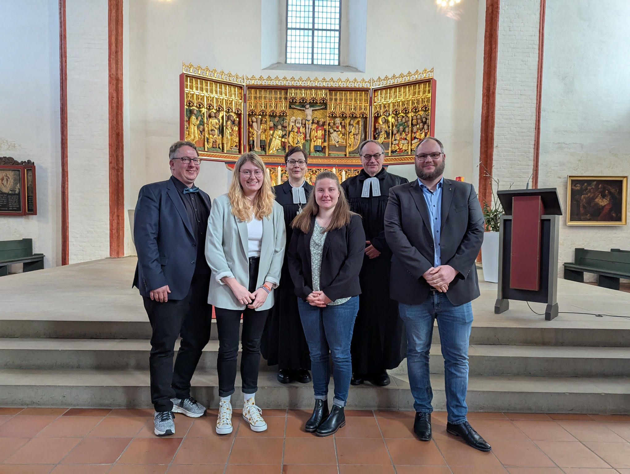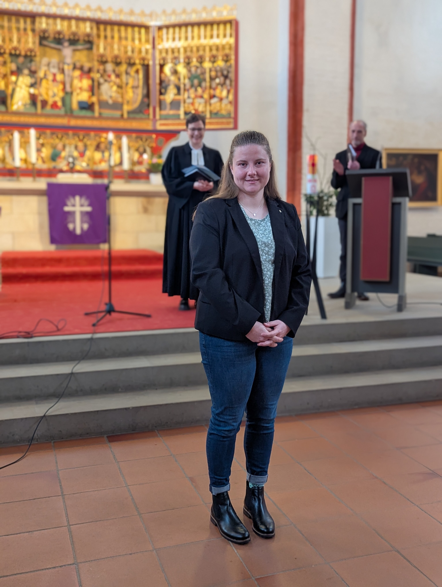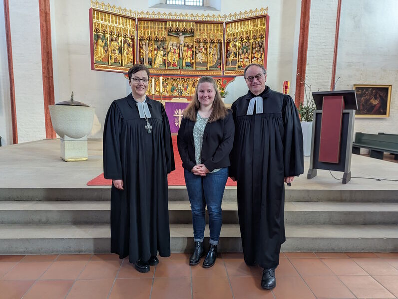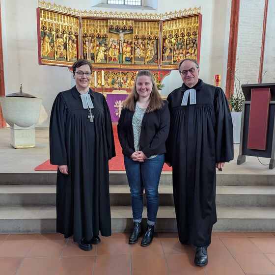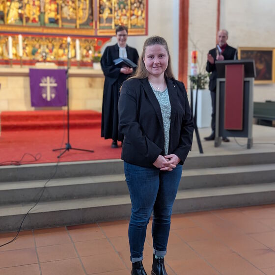 Für Lisa Tobinski war es besonders schön, dass sie drei Menschen an ihrer Seite hatte, die ihren eigenen Glaubens- und Berufsweg wesentlich mitgeprägt haben – als Einsegnungspat:innen: Frank Jonas, Kirchenkreisjugendwart in Lüneburg, war für sie in ihrer Jugendzeit eine prägende Figur. Martin Höft, Kirchenkreisjugendwart in Uelzen, begleitete sie im Anerkennungsjahr als Anleiter. Und Anni Behrens, ihre beste Freundin, mit der sie über die Evangelische Jugend in Kontakt kam – gemeinsam leiteten sie Freizeiten, engagierten sich im Konventsvorstand und wuchsen in der kirchlichen Jugendarbeit gemeinsam heran.
