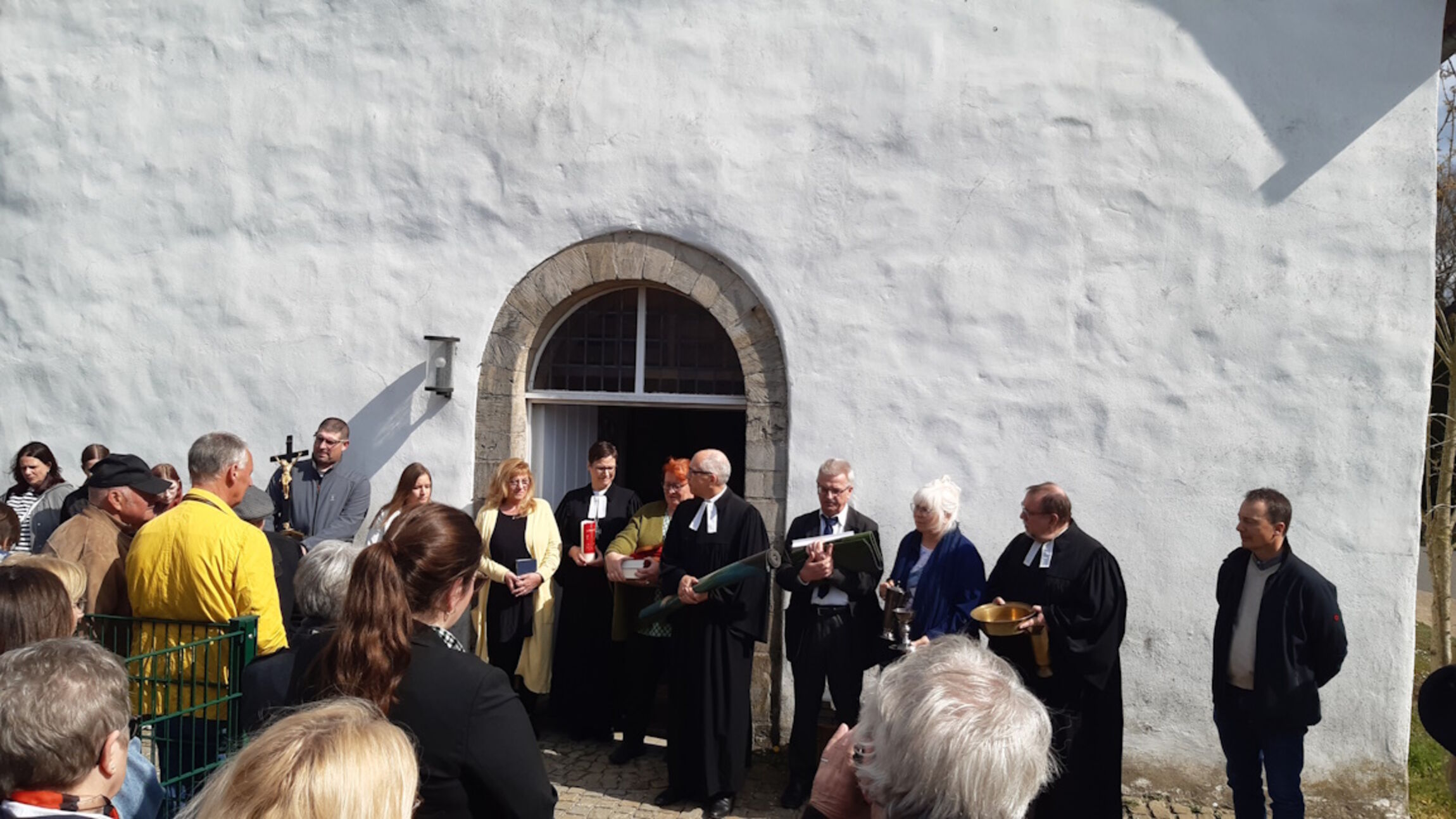 In Rennau wird es künftig still sein. Keine Glocke mehr, die zum Gottesdienst ruft, ohne Stundenschlag und ohne Totenglocke. Denn die Kirche im Ort wird verkauft, die Glocke ist ausgehoben. „Die Gemeinde Hasenwinkel verliert einen Ort, aber sie verliert nicht ihre Verheißung“, sagt Regionalbischöfin Marianne Gorka, die am Palmsonntag im Beisein von Gemeinde, Vertreter:innen des Kirchenkreises Wolfsburg-Wittingen und des Superintendenten Christian Berndt die erste Dorfkirche im Kirchenkreis Wolfsburg-Wittingen entwidmet hat.