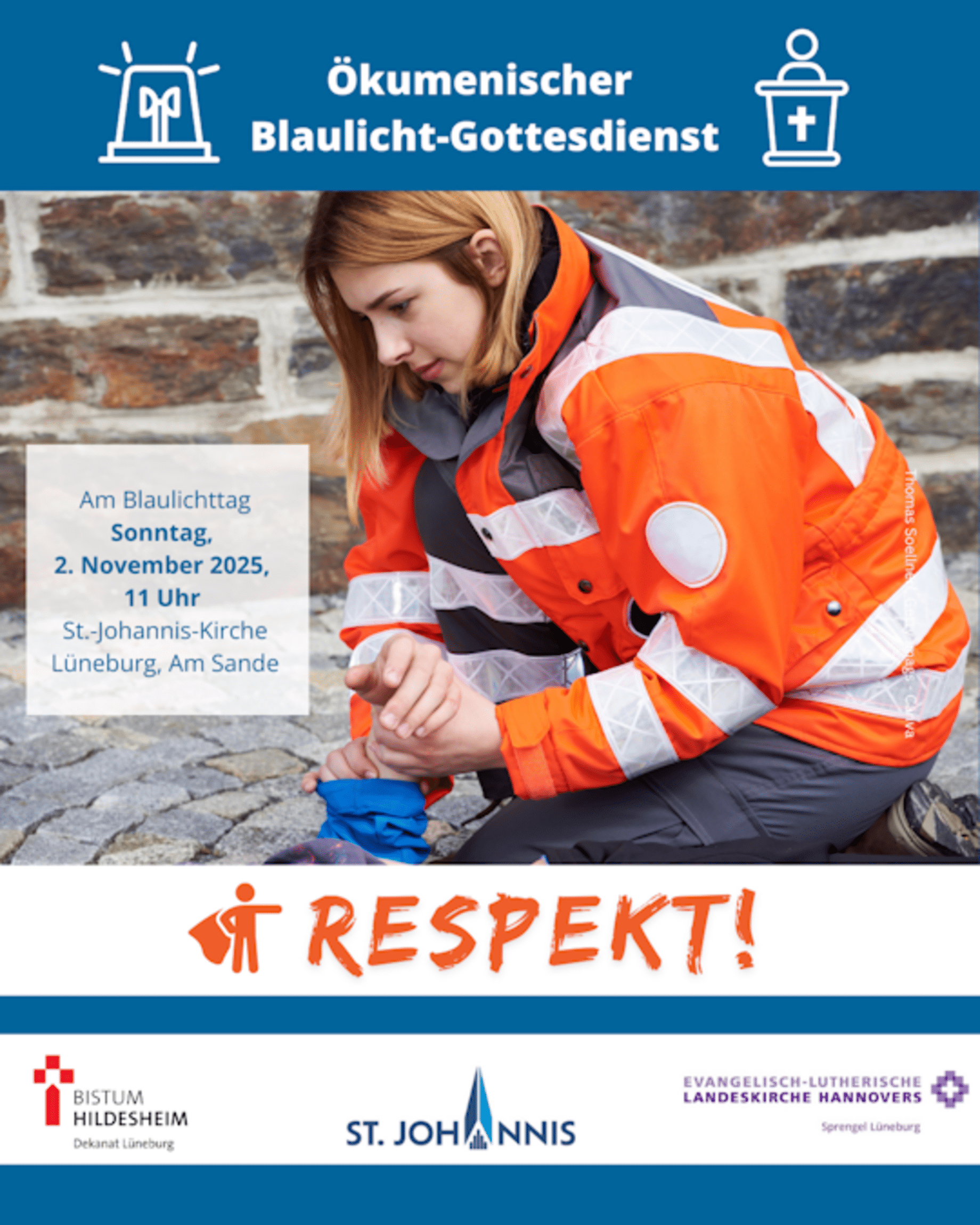 Am Sonntag, 2. November 2025, um 11 Uhr lädt der Sprengel Lüneburg gemeinsam mit der St.-Johannis-Kirche Lüneburg zum ökumenischen Blaulicht-Gottesdienst ein. Der Gottesdienst bildet den geistlichen Auftakt des Lüneburger Blaulichttages, der im Anschluss rund um die Innenstadt stattfindet und das Engagement der Einsatzkräfte sichtbar macht.